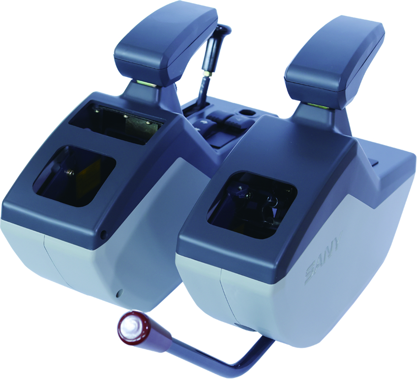 FSX-501左箱外形 尺寸554x120x332(长x宽x高)微挖用扶手箱,整体可掀起约50°,带手托,行程开关,右箱外形尺寸476x130x310(长x宽x高)安装部件:手油门,翘班开关,启动锁